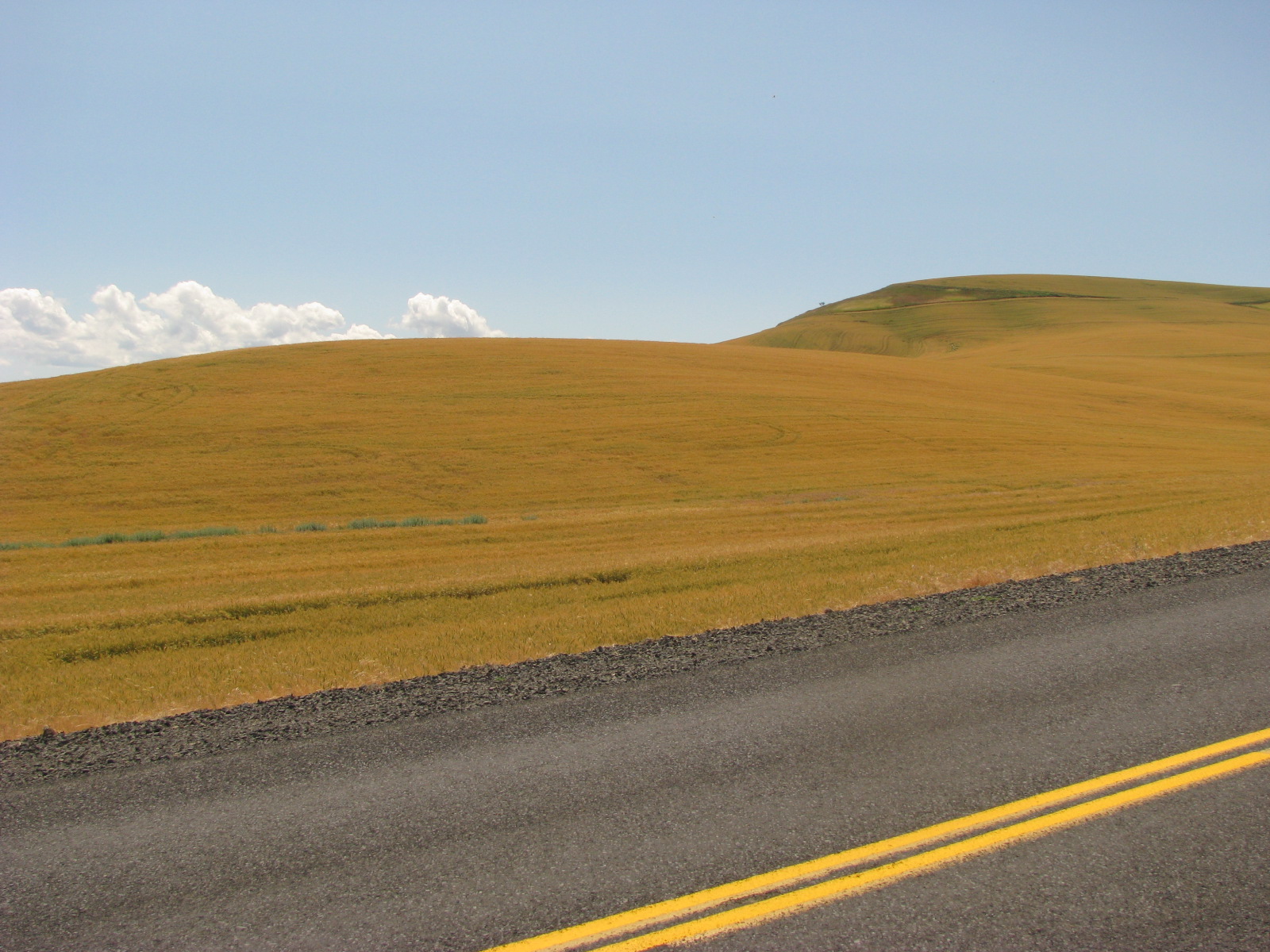 We finally climbed the mountain, and Pomeroy was about 9 miles away.  Those 9 miles were pretty great, after an arduous ride up, but it was very windy, which slowed down our otherwise gleeful descent.  The clouds broke up, too, and the sun came out.